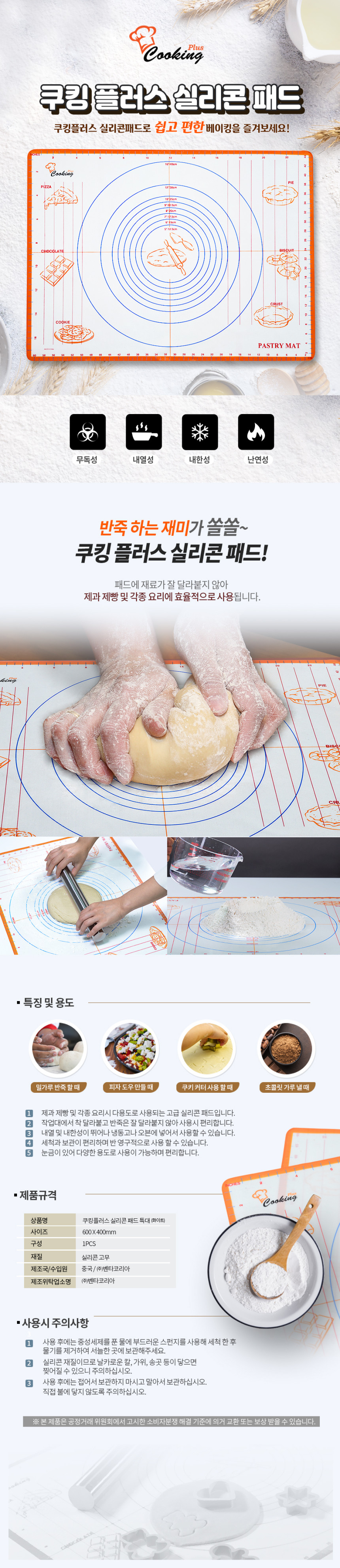 쿠킹플러스 실리콘 패드 특대 (화이트)