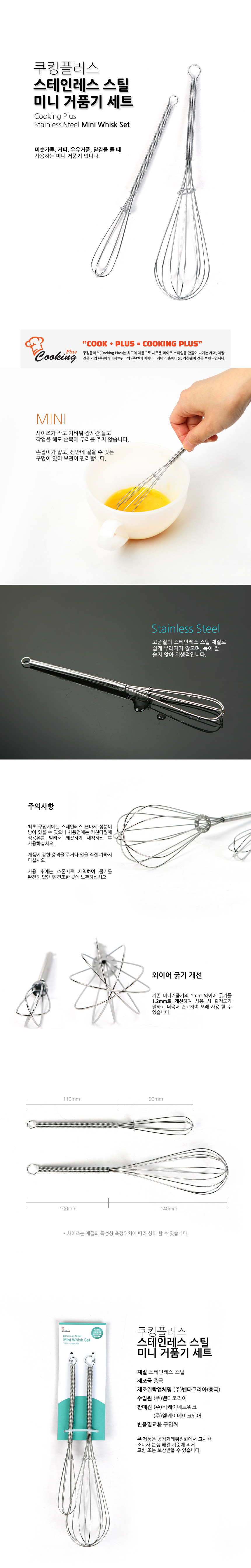 쿠킹플러스 스텐 미니거품기 세트